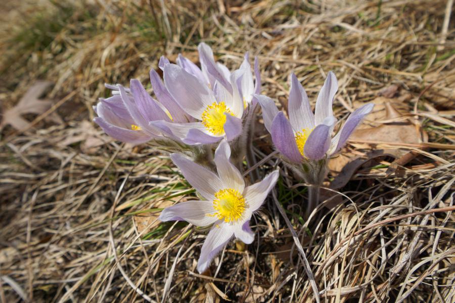 Pasqueflower (Anemone patens) in bloom at Ferry Bluff State Natural Area in Sauk County, Wisconsion on 3 April 2021.