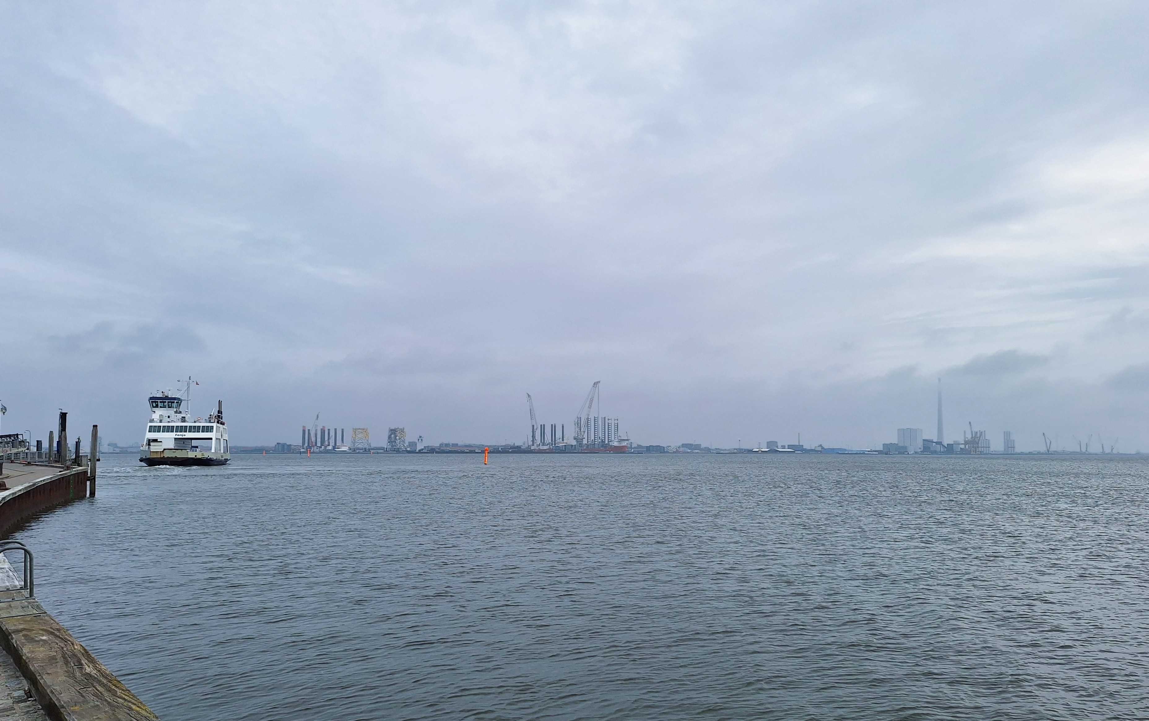 Figure 11: View of Esbjerg from Fanø, Danish Wadden Sea. Photograph by Enaiê Mairê Azambuja, March 2025.